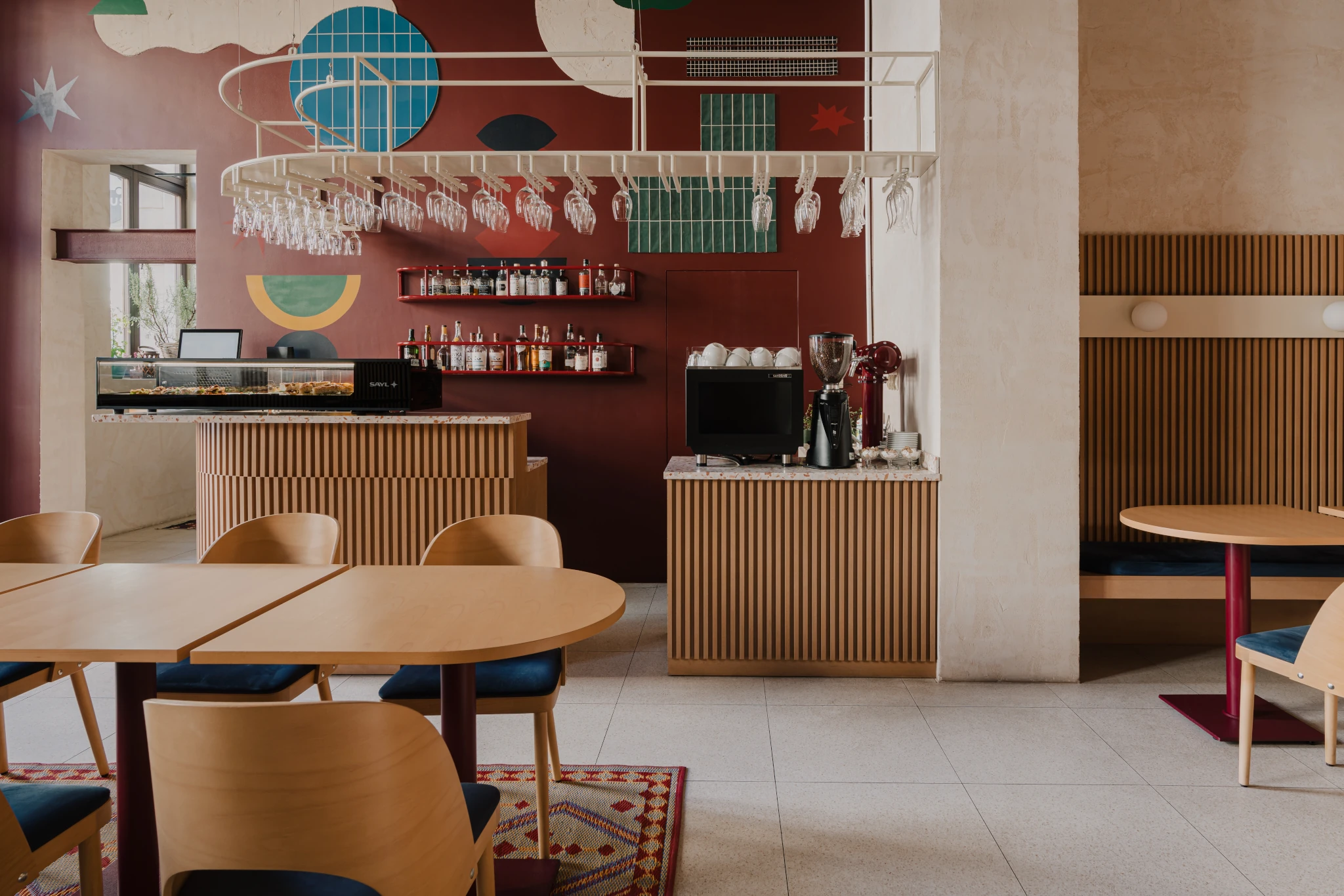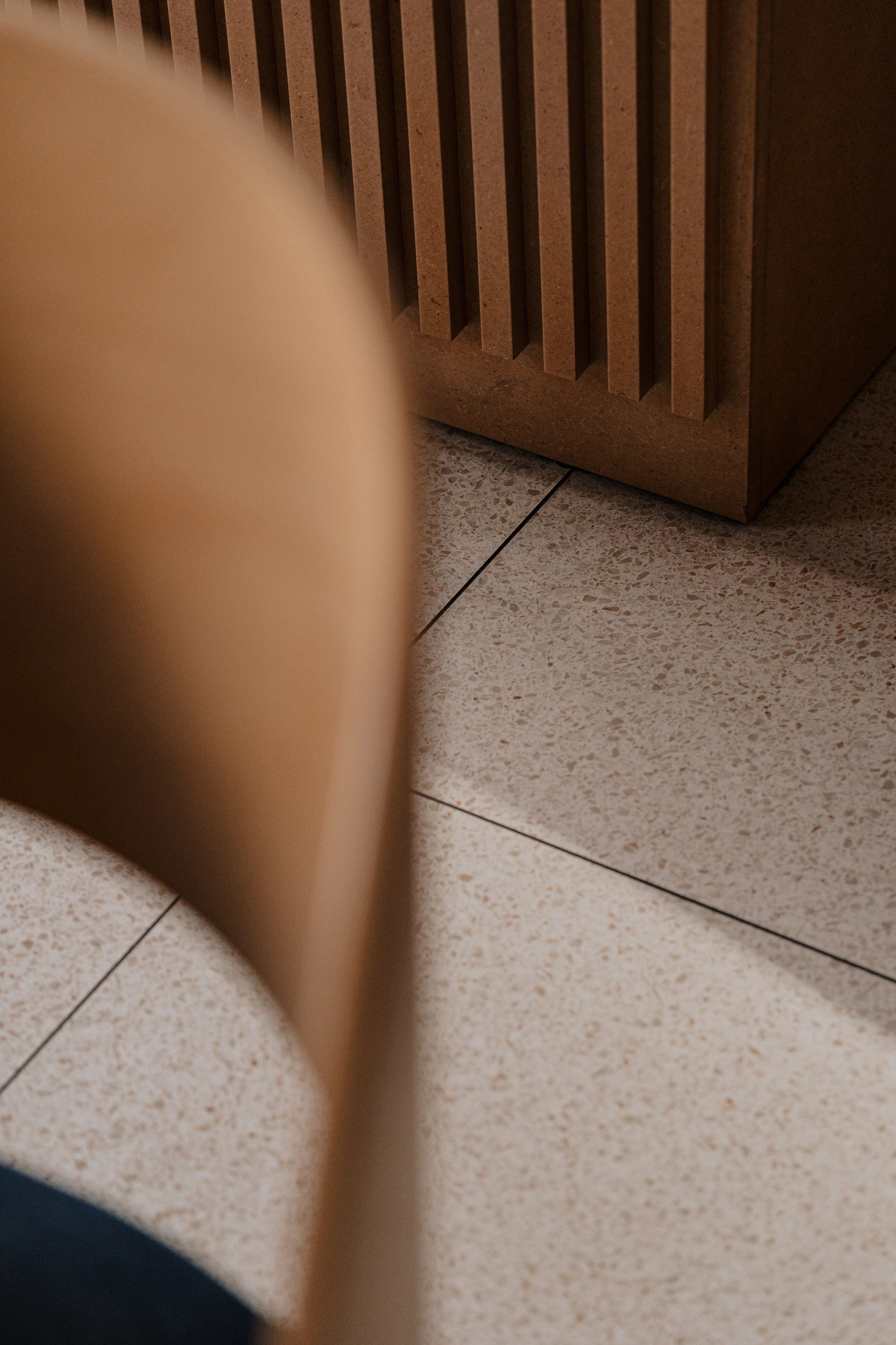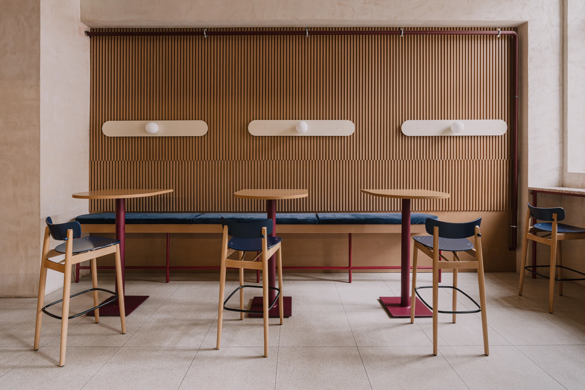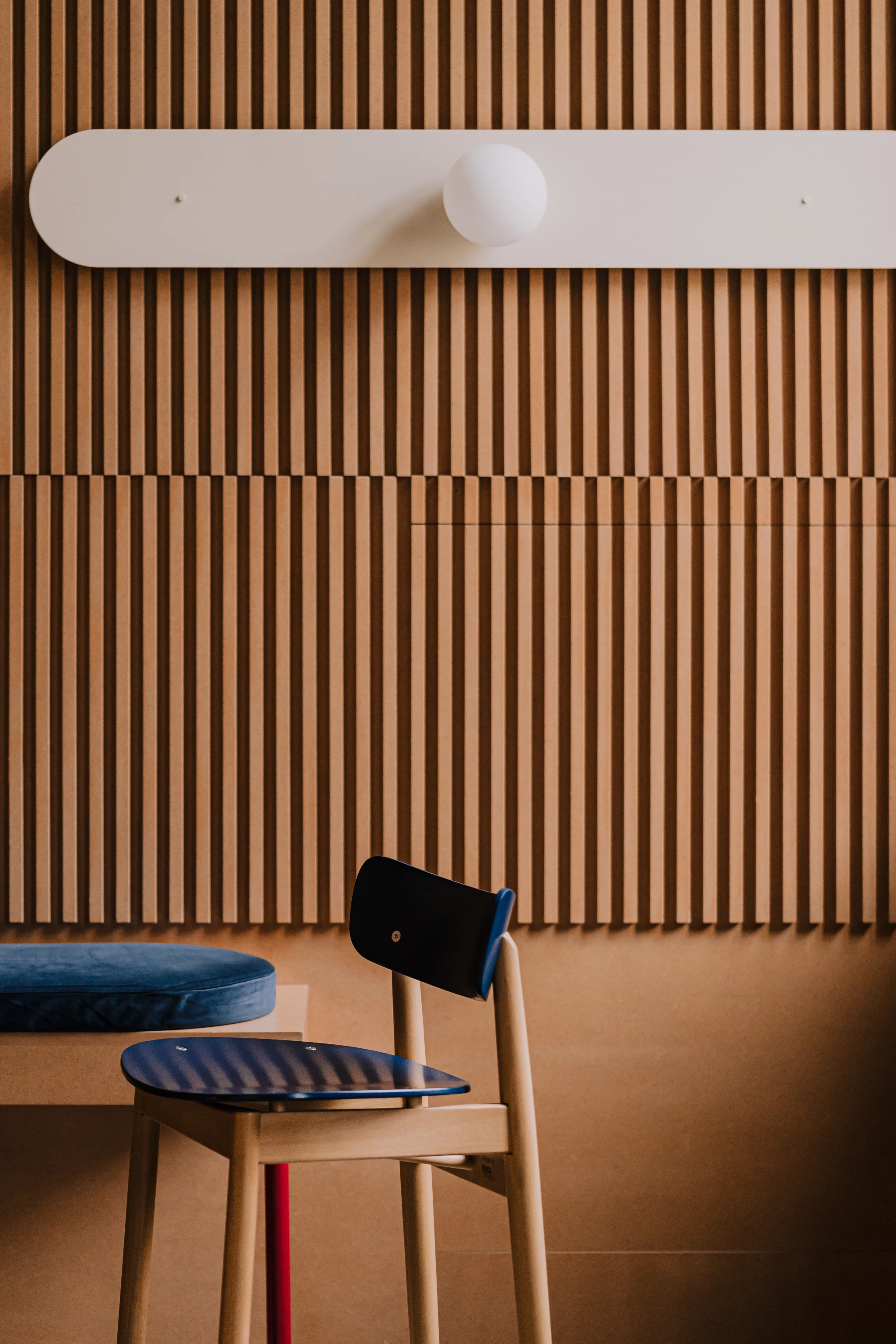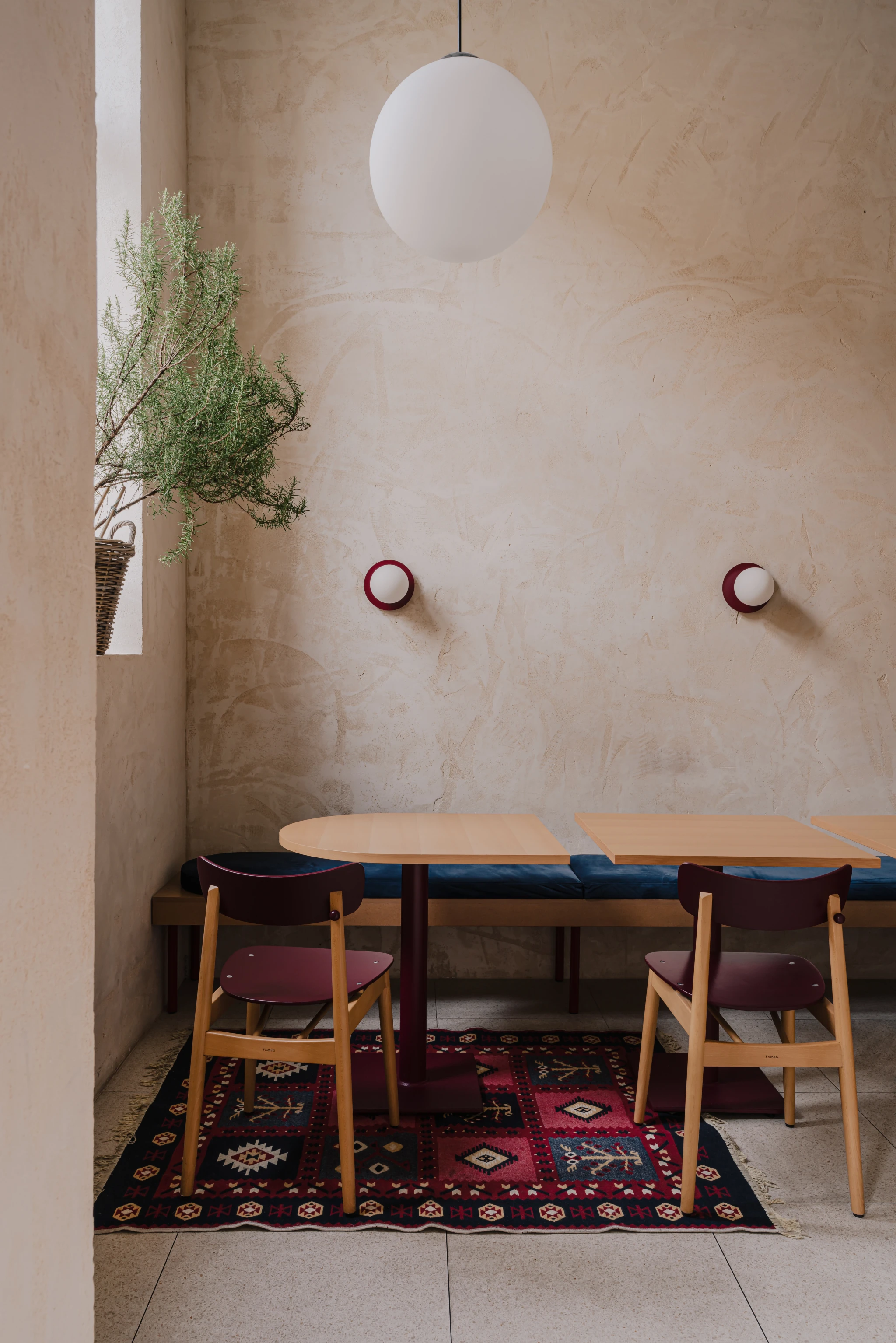 doświetlenie światłem naturalnym zmniejsza się im bardziej zanurzamy się w głąb restauracji. zainspirowało nas to do gradientowego