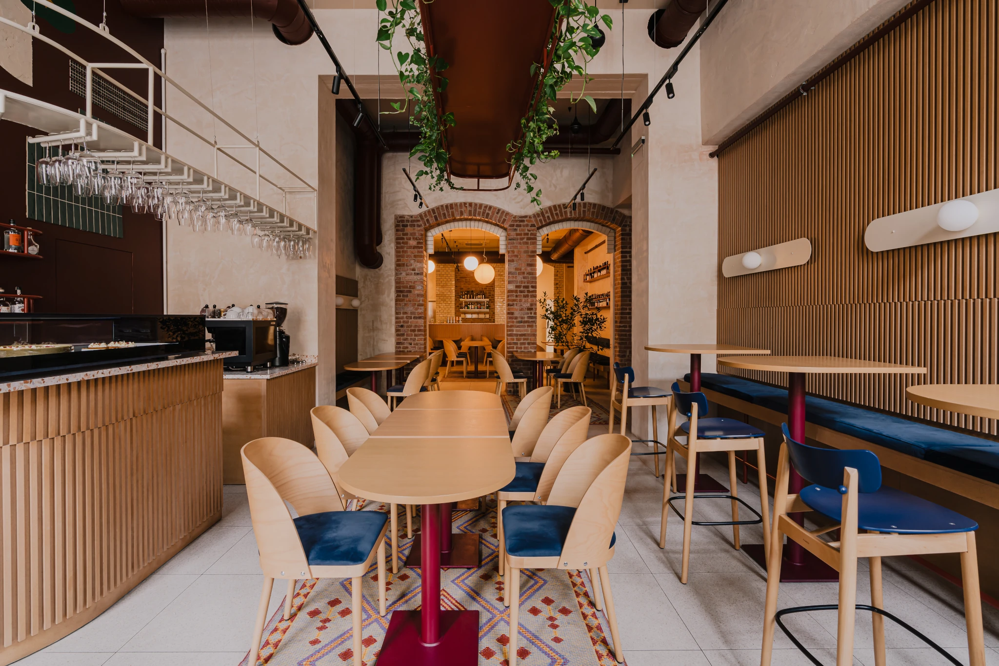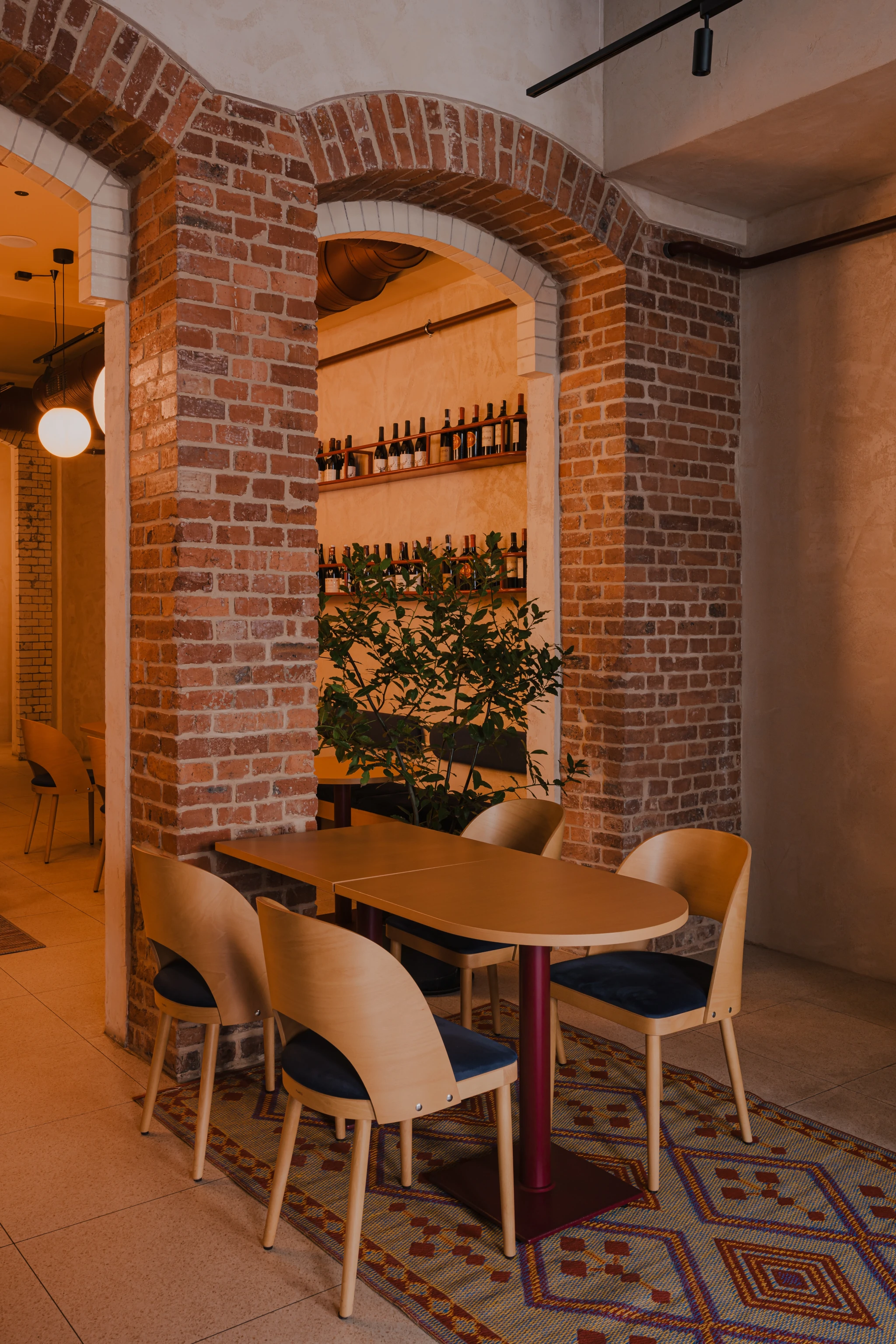 charakter wnętrz kreowaliśmy w oparciu o świadomość sprowokowania spotkanie eklektycznego konceptu gastronomicznego z wnętrzami