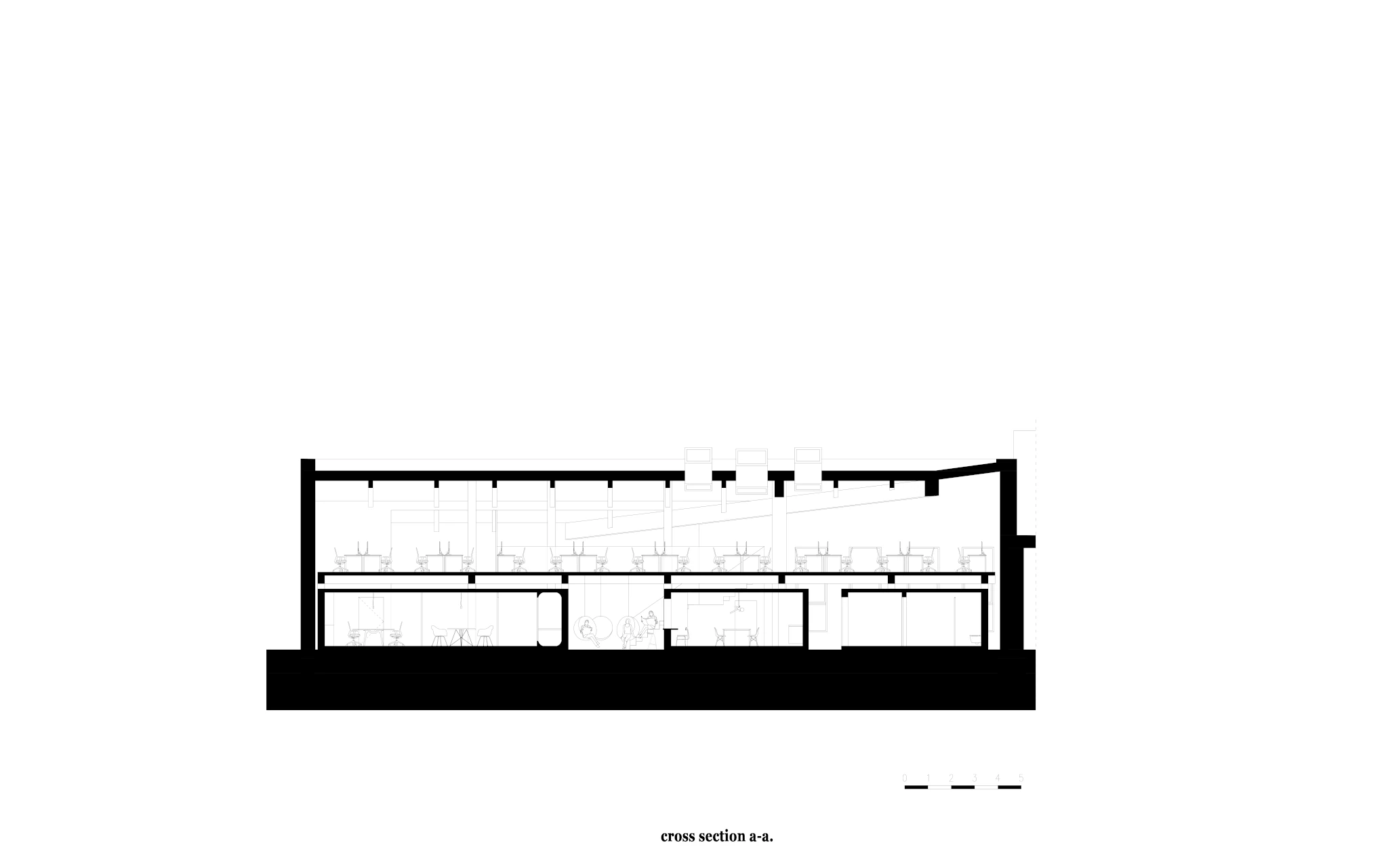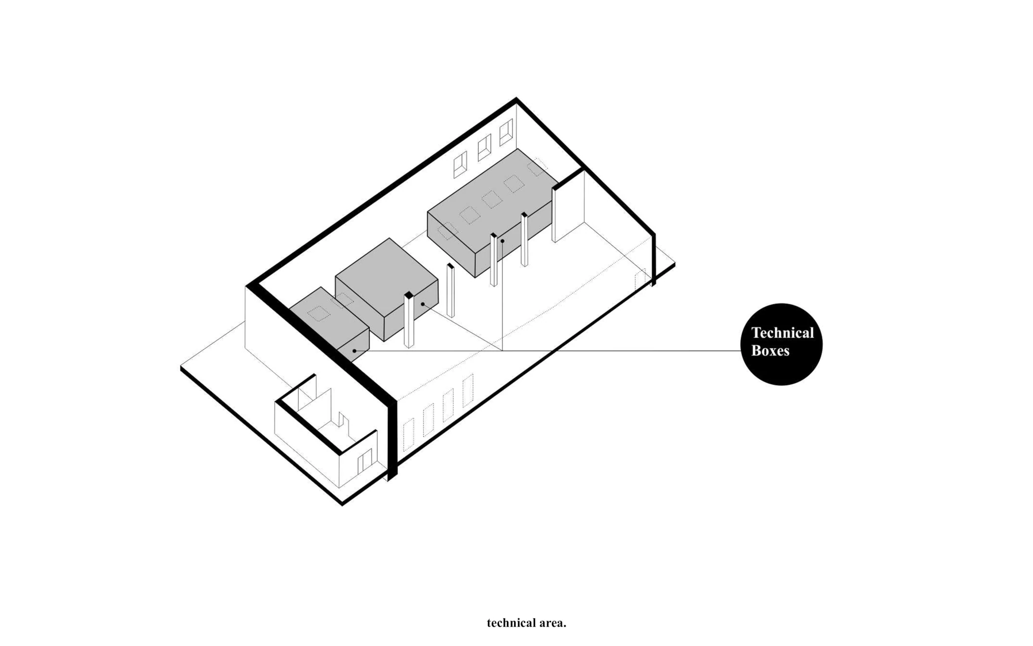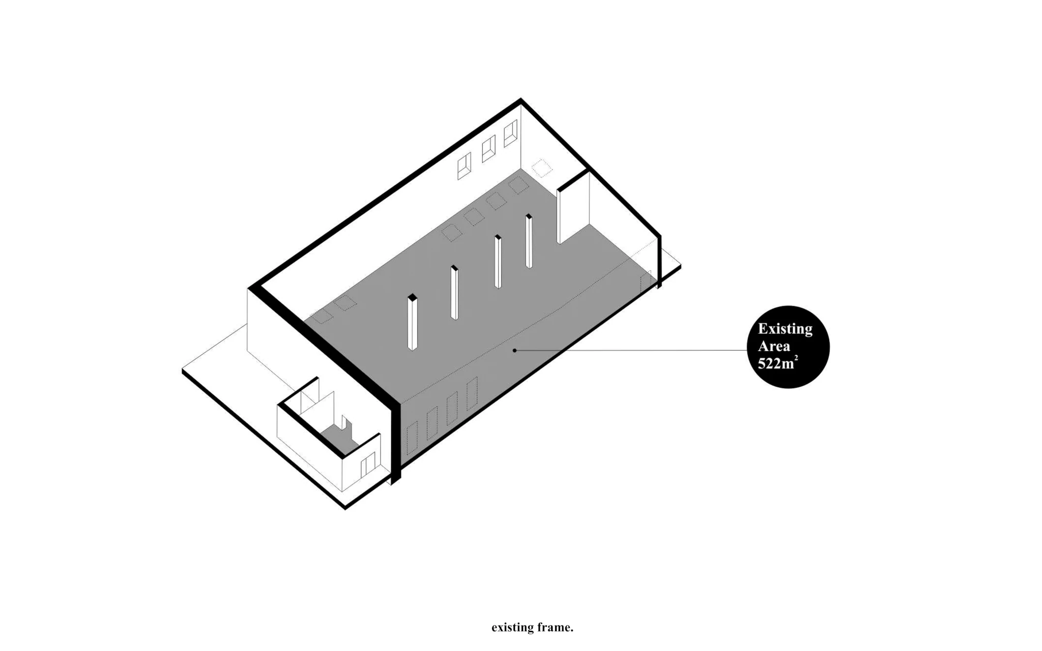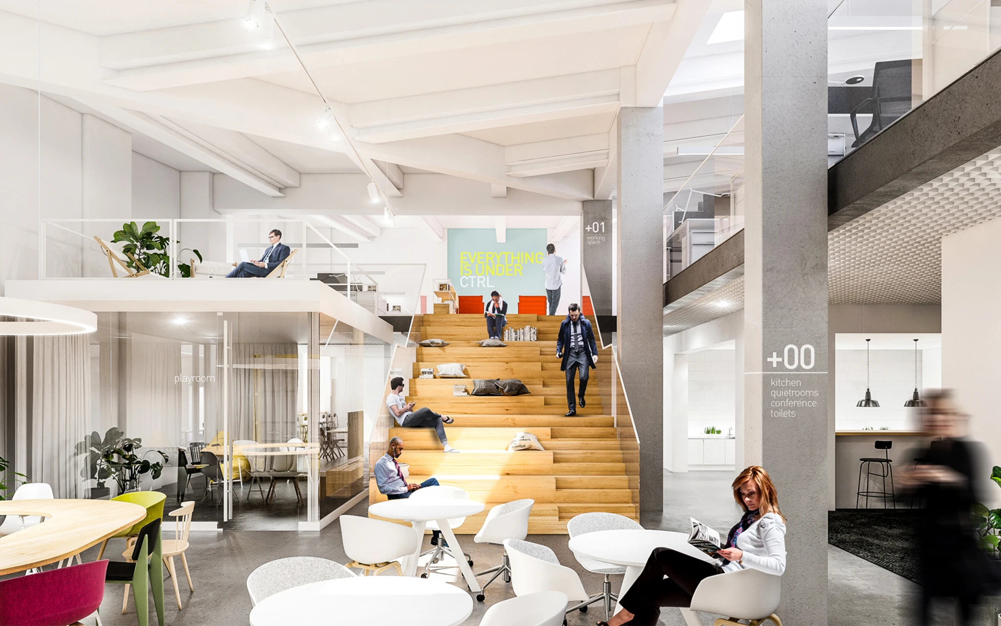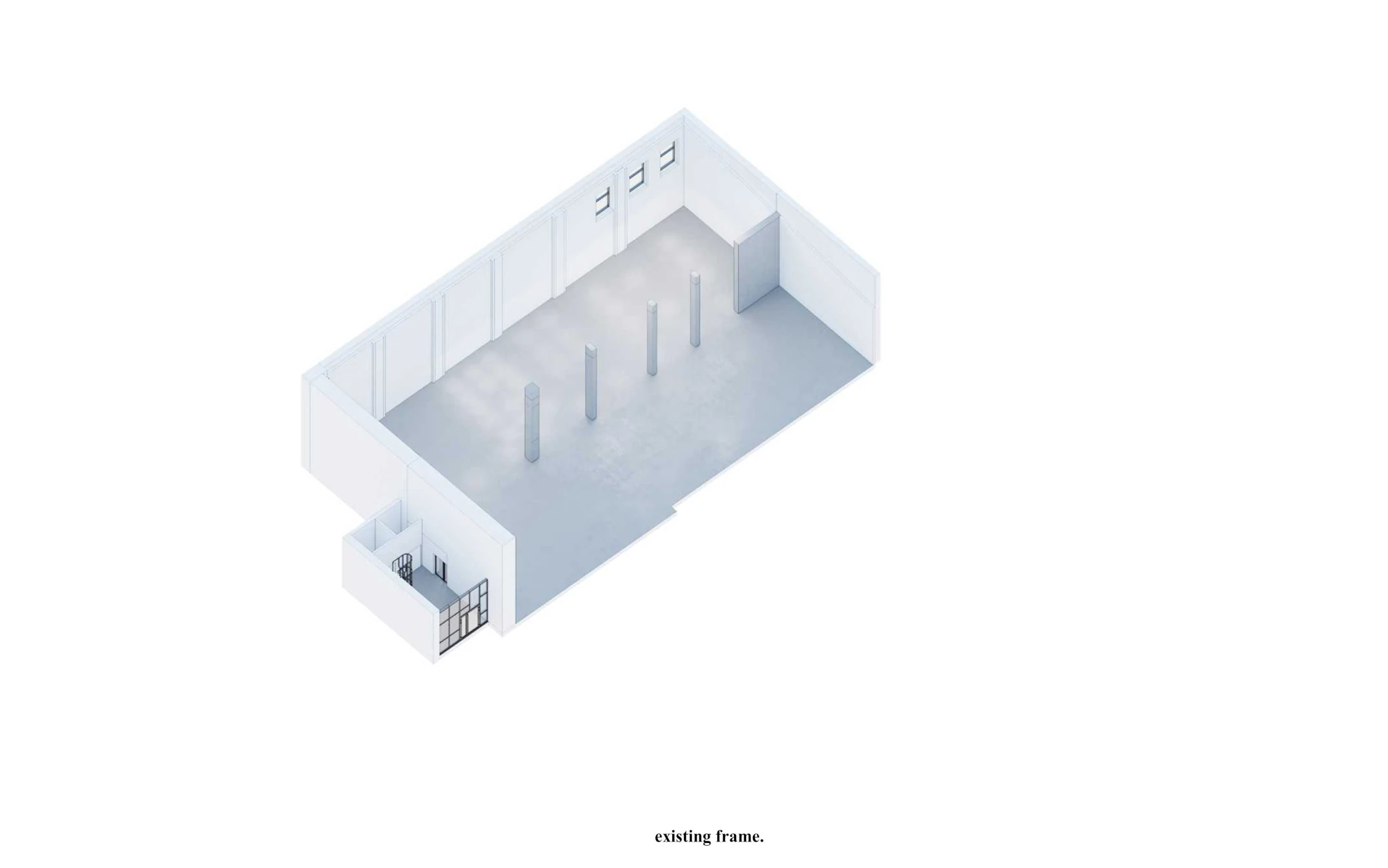Zadaniem projektowym była próba adaptacji części starej fabryki Miracullum w Krakowie na powierzchnie biurowe. Ze względu na niewielka ilość okien w hali i spora ilość świetlików dachowych zdecydowaliśmy się podzielić przestrzeń pracy na dwie podstawowe grupy. Pierwsza z nich, praca skupiona w dłuższym wymiarze godzin została zlokalizowana na zaprojektowanej antresoli tak, aby móc skorzystać w sposób optymalny z dostającego się przez świetliki dachowe światła dziennego. Praca nieformalna, grupowa, oraz chwilowa została zaplanowana na parterze budynku wraz z zapleczem socjalnym, kuchnią oraz toaletami. Dzięki wprowadzonej antresoli powierzchnia najmu zwiększyła się o 75%. W ramach dodatkowej przestrzeni wspólnej zostały zaprojektowane schody stanowiące również formę trybun podczas wykładów i warsztatów w większej grupie pracowników.